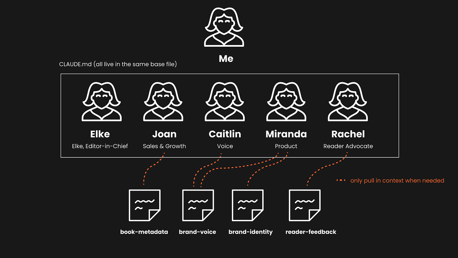 Agent 1: Elke, Editor-in-Chief. She runs the team, pulls it together, and tells me where we stand. When I do not know where to start, I talk to Elke. She knows this from the description, not from the file order.